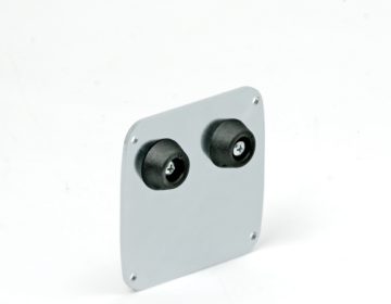This cup receives the track in either the closed or open position. The beveled leading edge allows for a smooth entry and stop. The cup holds the gate steady, reducing vibrations from wind conditions, etc., and prolongs the life of the carriages and gate operators.
