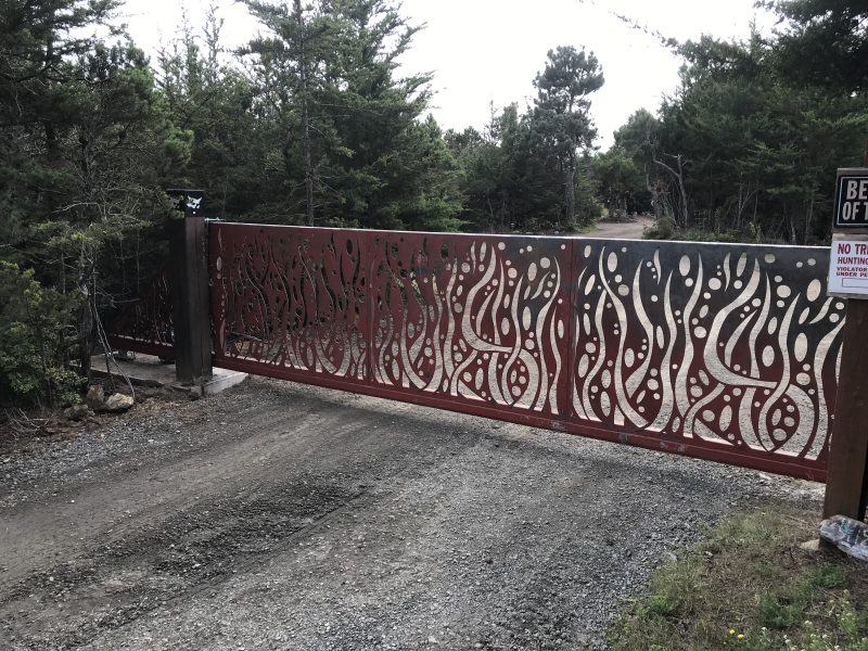 The homeowner at this residence in California wanted a sturdy gate at the entrance to their property. The driveway was 18 ft. wide and the weight of the gate was 800 lbs. so no ordinary sliding gate hardware would work. The installer, Atkinson Welding, recommended the Duragates cantilever hardware Model CGS-250.8P since it is suited to work in almost any application. The gate was automated with a BFT ARES gate operator and the clients are thrilled.
